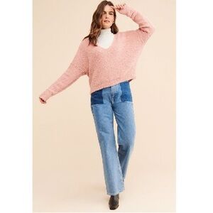 Free People Finders Keepers Boucle V Neck Sweater Size Medium Nude Peach