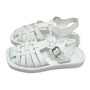 Free People Finn Fisherman Platform Italian Leather Sandals in White Size EU 39 The Free People Finn Fisherman Platform Italian Leather Sandals in White Size EU 39 are stylish and versatile sandals perfect for casual occasions during the summer and spring seasons. Made from high-quality leather with a solid white color, these sandals feature a fisherman style design that adds a bohemian touch to any outfit. The comfortable leather lining and insole make them a great choice for all-day wear, and the platform sole provides extra height while maintaining a trendy look. Ideal for women who love a combination of fashion and comfort, these Free People sandals are a must-have for any wardrobe. Made in ItalyReal leatherAdjustable buckle Padded footbedRubber outsole new without box.