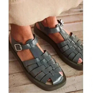 Free People Finn Fisherman Platform Sandals in Sea Serpent Green