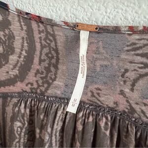 Free People Fiona Print Top Surplice Statement Sleeve Blouse Shirt Medium