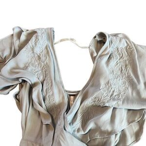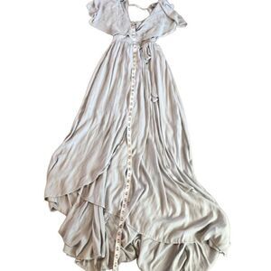 Free People Fiona Long Gray Floral Embroidered Wrap Maxi Dress SIZE S