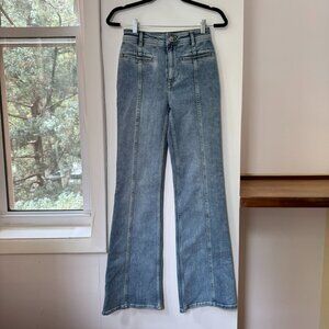 New Free People Firecracker Flare Jeans Blue Red Suede 26