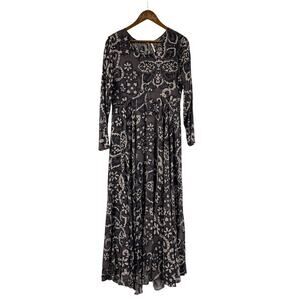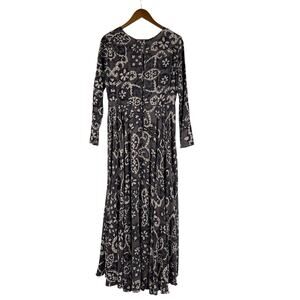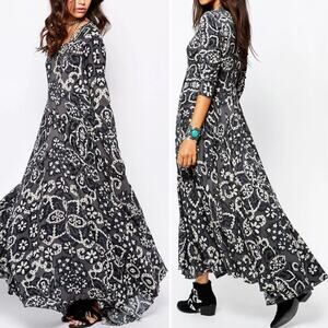 Free People First Kiss Maxi Dress Gray Floral Large Long Sleeve