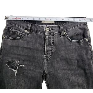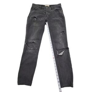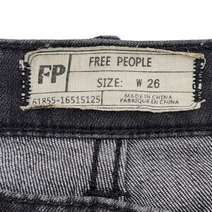 Free People Fishnet Patch Jeans Button Fly Faded Black Distressed Womens Sz 26