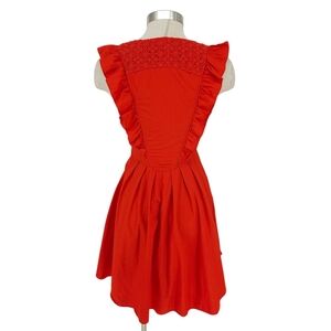 Free People Fit Flare Dress Half Moon Red Flutter Sleeve Lace Pleated A Line XS