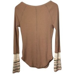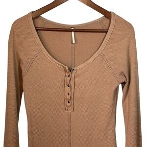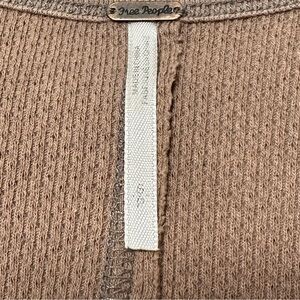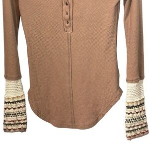 Free People Fitted Henley Top Size S Taupe Ski Lodge Crochet Cuff Waffle Knit