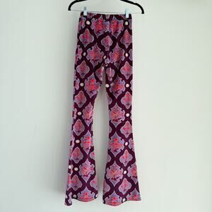 Free People Flare Street Velvet Flare Pants XS High Rise 70s Damask Boho Baroque