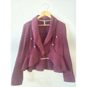 Free People Flared & Femme Open Jacket Features Stretchy Knit Fabric, Flared Peplum Style Trim That Continues Into The Lapel For A Ruffle Look, Decorative Buttons For A Faux Double Breasted Design, Long Sleeves With Button Up Cuffs, & 2 Hidden Front Pockets. Please Note This Jacket Has No Front Closure & Is Worn Open.