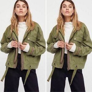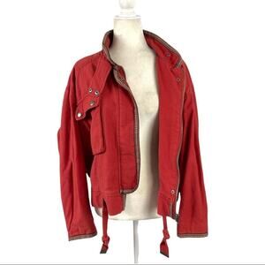 Free People Flight Line Oversized Military Red Bomber Jacket Size XS Embroidered