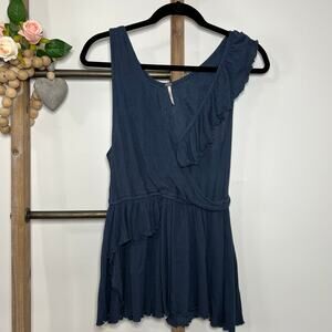 Free People Float Away Blue Tank Layered Ruffles Size Medium