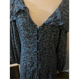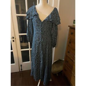 Femme and floral, this forever flattering midi dress is featured in the most versatile, button-front silhouette with ruffled detailing and exaggerated sleeves for added shape.