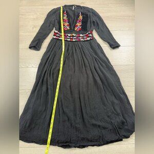 Free People Flora Embroidered Floral Midi Dress Black