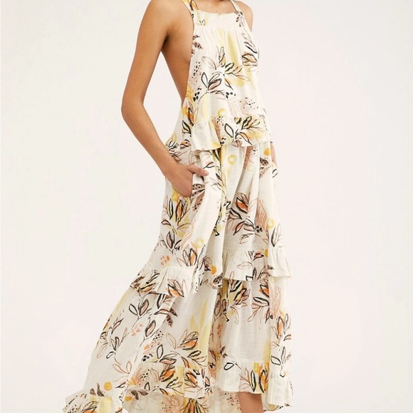 Free People Floral Backless Dress in Cream and Yellow