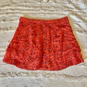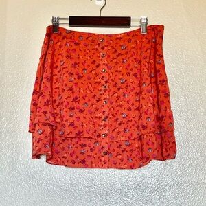 Free People Floral Button-Down Tiered Orange Skirt size small