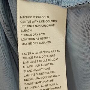 Free People Carmel mesh midi dress in women's size medium. Blue floral. Sleeveless. Side slits. Mesh overlay over removable slip dress. Bateau neckline. Side slits. Gently pre-owned.