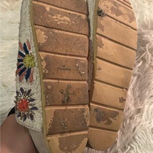 Free People Floral Embroidered Mules - Cream and Multicolor