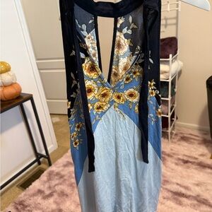 Free People Floral Embroidered Tank Top - Blue and Yellow
