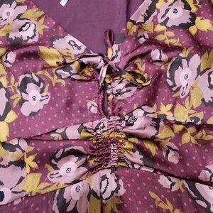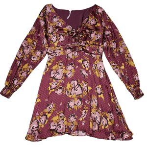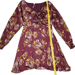 Free People Floral Fit & Flare Purple Dress Longsleeve Lightweight Size 6