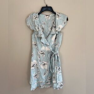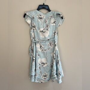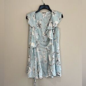 Free People Floral French Quarter Mini Wrap Dress, Mint Baby Blue, XS