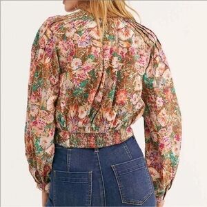 Free People Floral Garden Print Balloon Puff Sleeve Wrap Blouse Top women’s XS