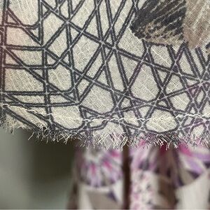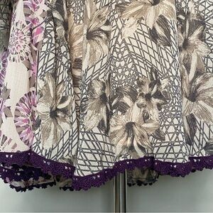 Free People Bohemian Cream, Gray, and Lavender Geometric Floral Printed Strappy Back Mini Dress, Small