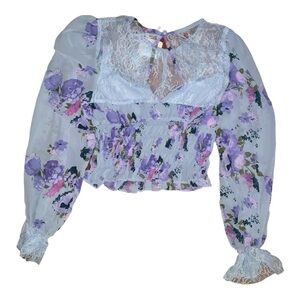 NWT Elegant floral top with lace details. Long sleeves with ruffled cuffs. Perfect for a chic look.