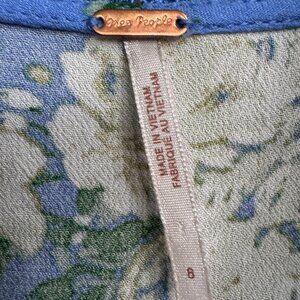 Free People Floral Lace Trim Dress ๐ธ Size 8 Blue Button Front Boho Fit & Flare
