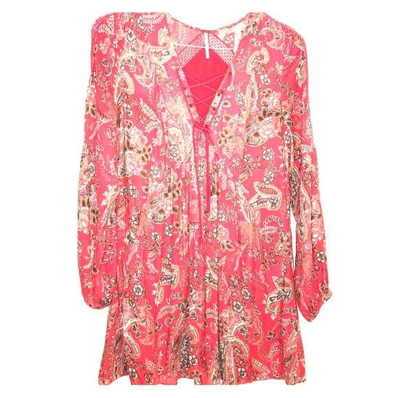 Very lightly used Free People floral lace up dress. Loose fitting - perfect with over the knee boots! Great piece all year round.