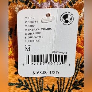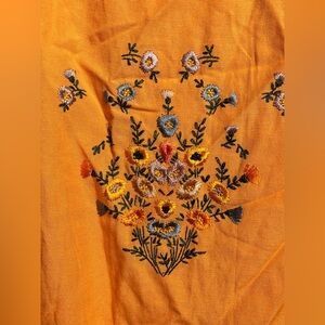Free People Floral Linen Blend Embroidered Orange Off Shoulder Dress Medium NWT