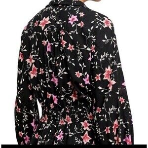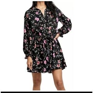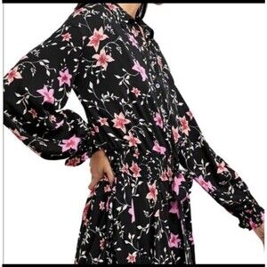 Free People Floral Long Sleeve Dress Black/pink Lighten Up Mini Tie Waist.