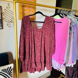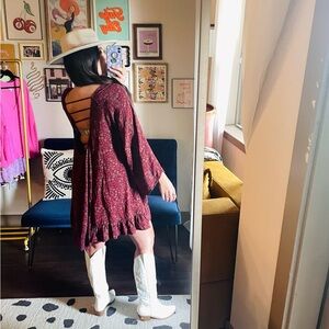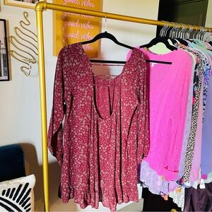 Free People Floral Long Sleeve Open Back Tunic Mini Dress