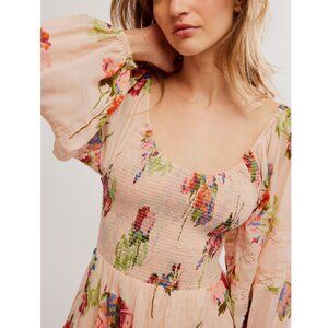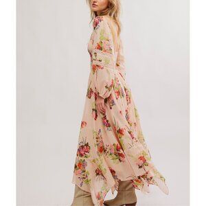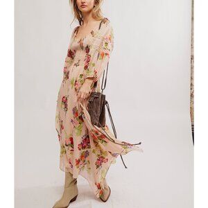 Free People Floral Maxi Dress - Pale Peach and Green Size XL