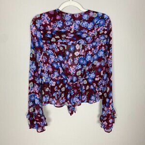 Free People Floral Maybel Blouse V Neck Long Sleeve Sheet Ruffle Shirt Womens M