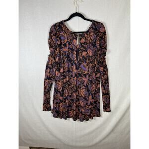 Free People Floral Medium Hello Lover Long Sleeve Tunic Dress Top V Neck Flowy