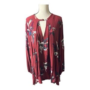 Chic Free People mini dress with floral print. Rich burgundy base with white and blue flowers. Perfect for a stylish look. Size medium