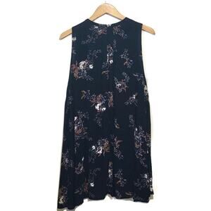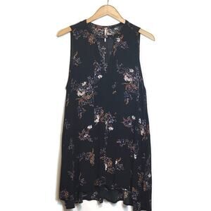 Free People Floral Mini Dress Black Sleeveless V Neck Swing Flowy Babydoll S