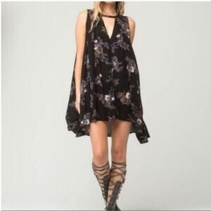 Free People Floral Mini Dress Black V Neck Sleeveless Swing Flowy Babydoll S