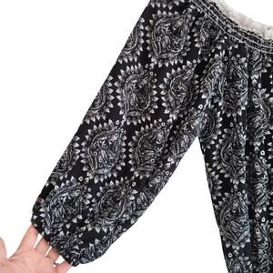 Free People Floral Off Shoulder Mini Dress Small Black Crochet Mini Cottage Boho