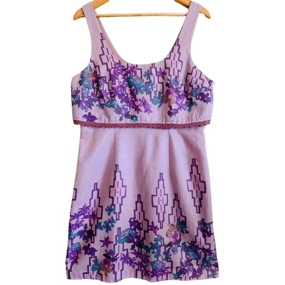 Free People Floral Preppy Scoop Neck Mini Dress Size 10 Cocktail Vacation