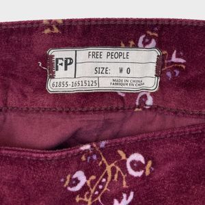 Free People Floral Print Velvet Button Up Mini Skirt in Burgundy Womens Size W 0