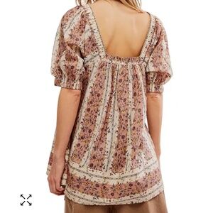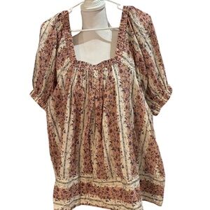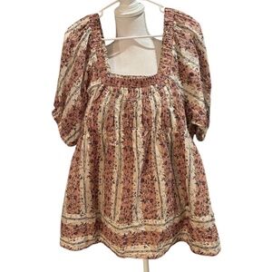 Free People Floral Puff Sleeve Top - Pink and Cream