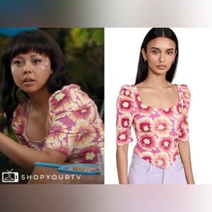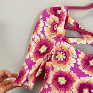 Free People Floral Puff Sleeves Cut Out Back Crop Top Pink Size XS