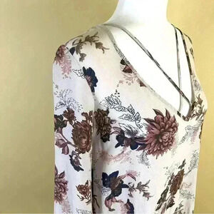 Free People Floral Rayon Cross Strap Bell Sleeve Shift Tunic Blouse Size XS