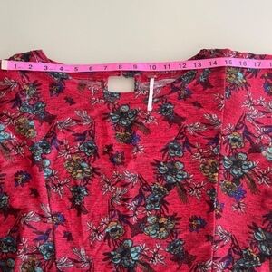 Free People Floral Red Women's Top Size Large Long Ruffle Sleeves Crew Neck