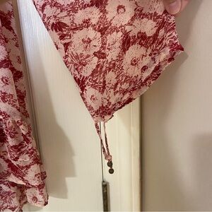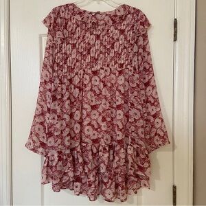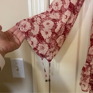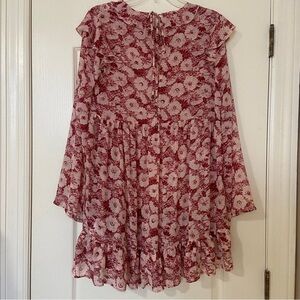 Size Small Free People These Dreams Red and White Floral Long Sleeve Sheer Mini Dress in Preowned Condition
