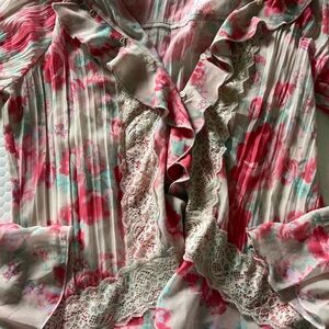 Free People Floral Ruffle Blouse