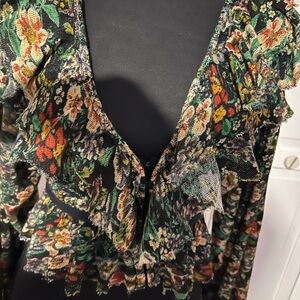 Chic floral blouse with ruffle details. Perfect for stylish looks.