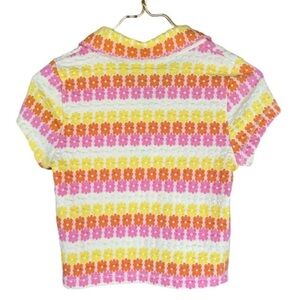 Free People Floral Short Sleeve Babe Town Cropped Polo Top NWT