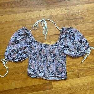 Free People Floral Shoulder And Wrist Tie Square Neck Crop Top A7