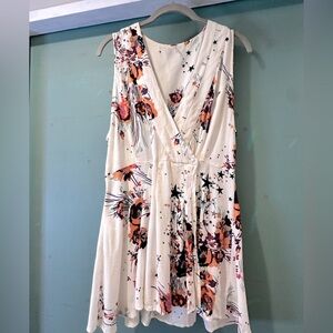 Free People Floral Sleeveless Boho Flowy Ivory Tunic Top- Size S